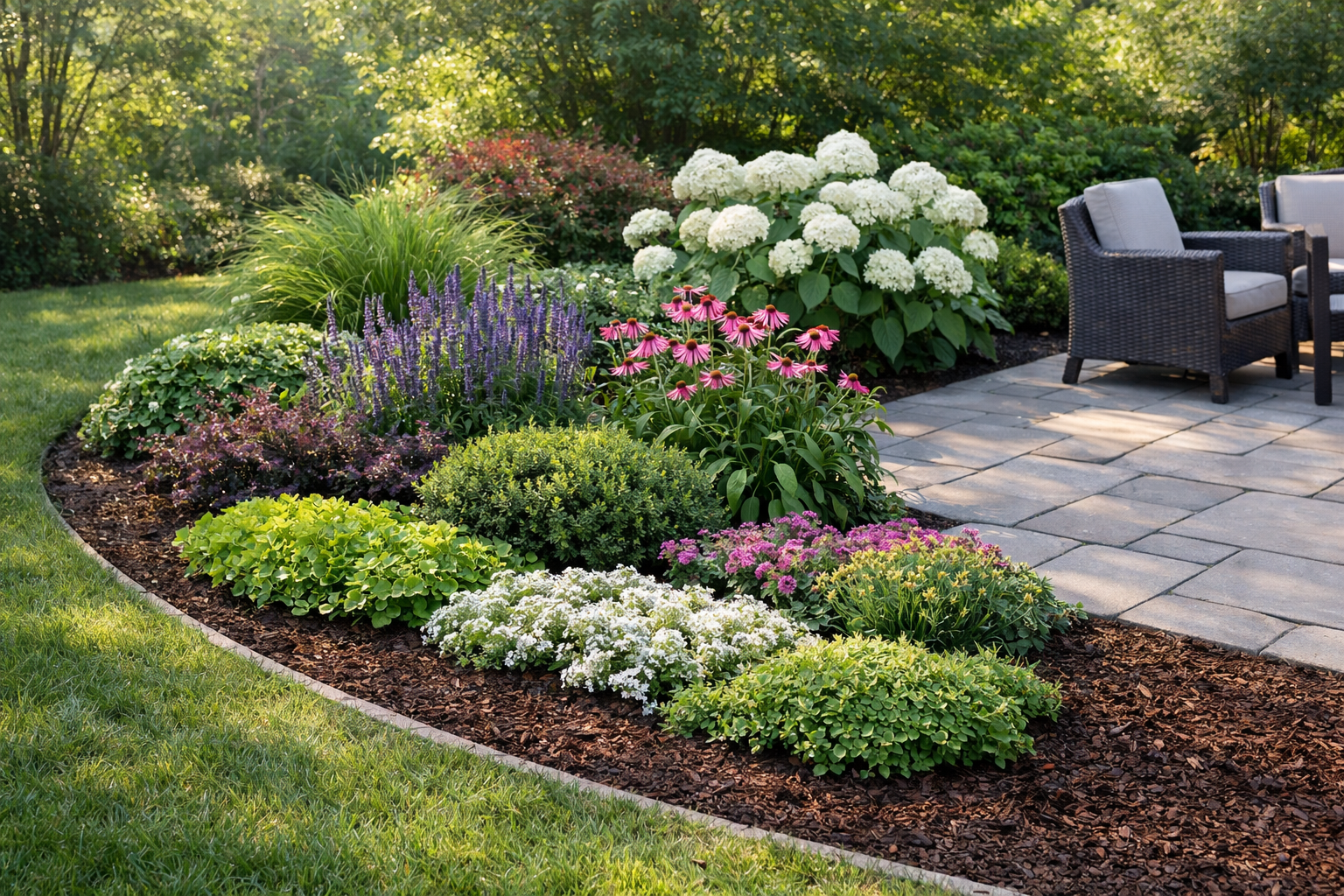 - Border langs de vlonderrand om de overgang te verzachten.